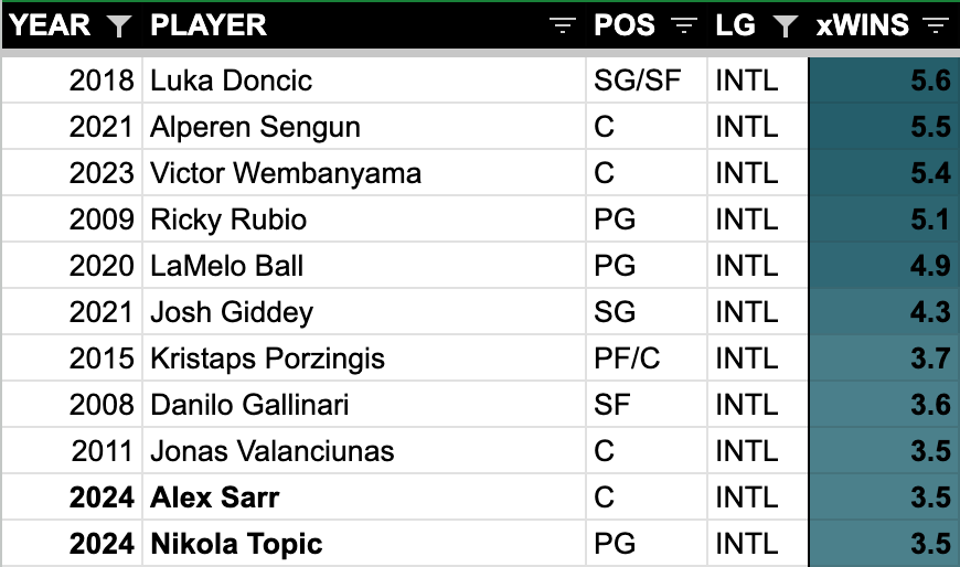 My yearly roundup of international draft prospects looks at the class from a statistical point of view using my DMX draft model. Here are the draft model projections and overall rankings for the international prospects in the latest ESPN mock draft: